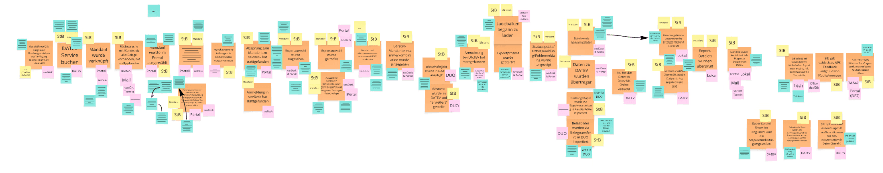 To make sense of it, we held an Event Mapping workshop with colleagues from the tax advisor support team and internal tax experts. The goal was to create a shared view of the advisor journey and identify key pain points, from onboarding to daily collaboration with clients.