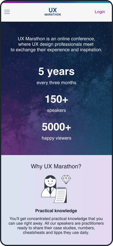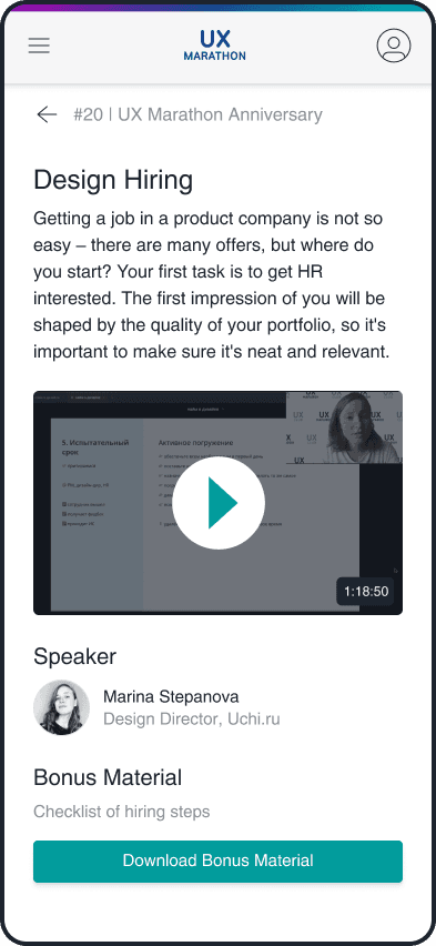 Before 2020, UX Marathon was just a series of live events for UX specialists. I led the design for its first digital platform and changed scattered content into a structured and easy-to-navigate learning experience. By collaborating closely with the founder, I transformed the live-only format into a scalable product with lasting value.