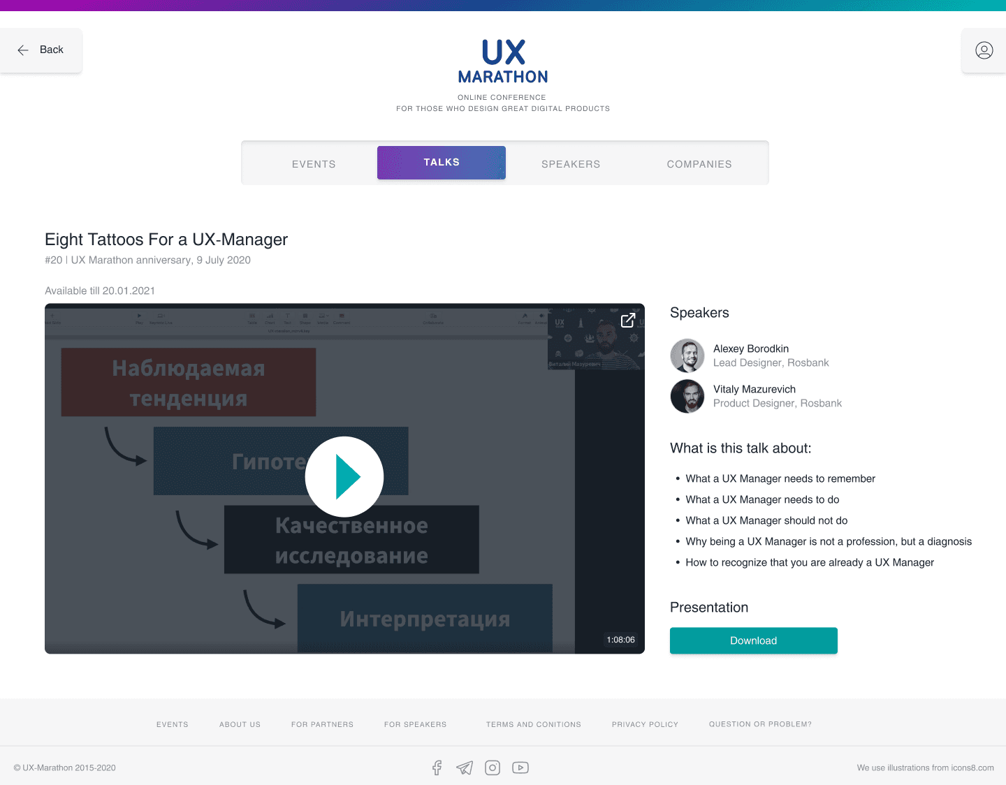 Our goal was to build a scalable learning platform — a single place where UX professionals could join live talks, browse past content, and manage their participation with ease.